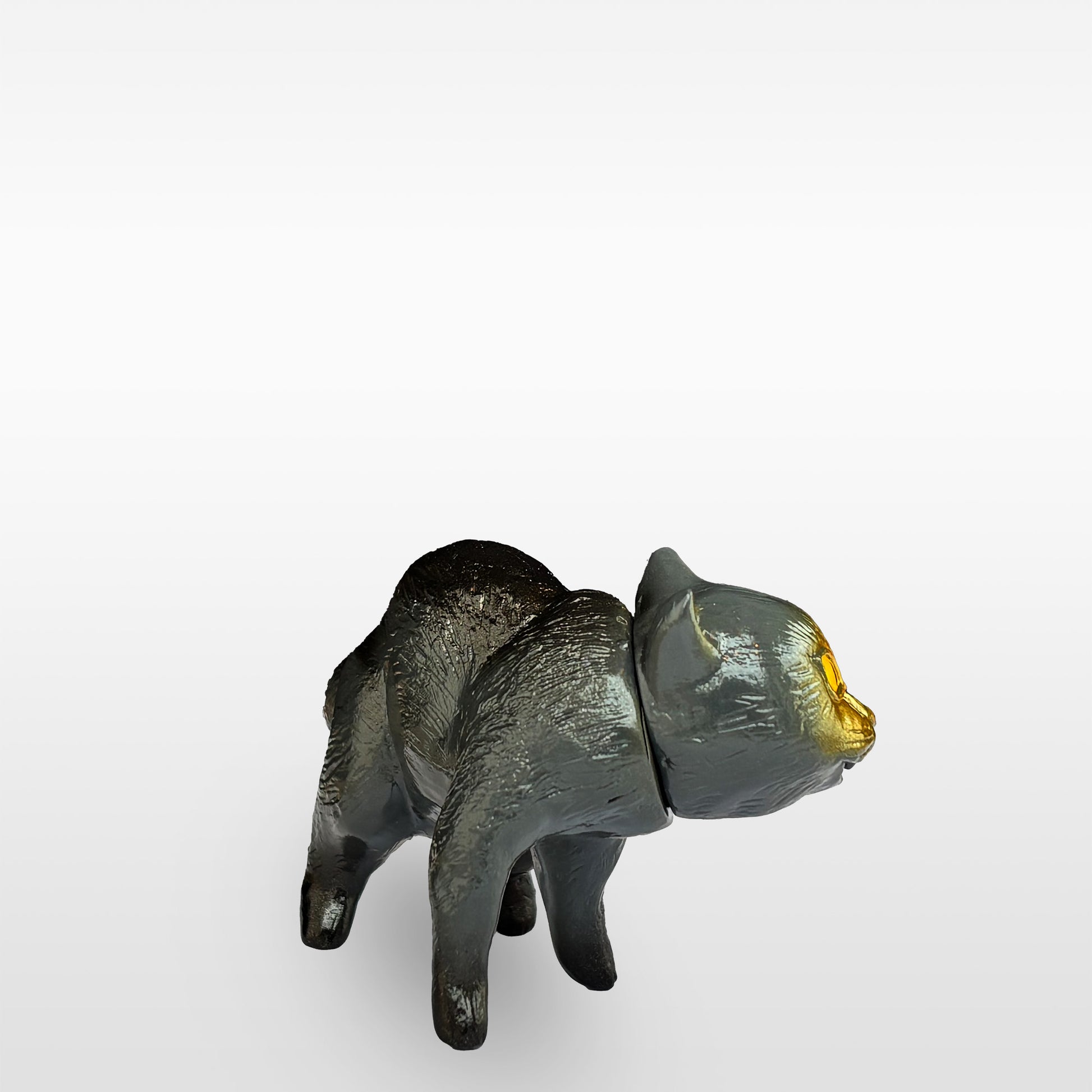 2パーツ構成の本作は、ダークグレーの成型色をベースに、顔には金、体にはガンメタ塗装を施し、光の当たり方によって繊細な毛並みのニュアンスが浮かび上がります。